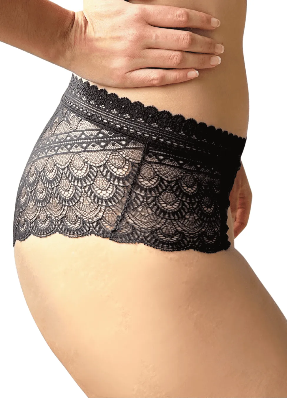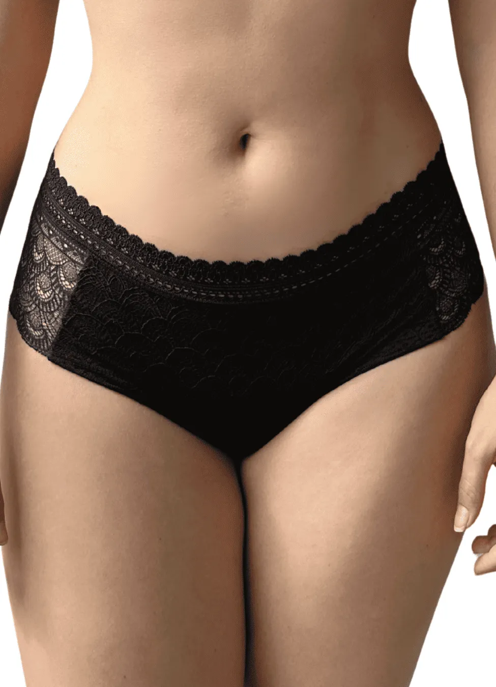 Tiro medio, con un pequeño cinturón que moldea mejor la cintura y enmarca la silueta. Su estilo en cachetero brinda mayor comodidad y el encaje le da una horma increíble al cuerpo.