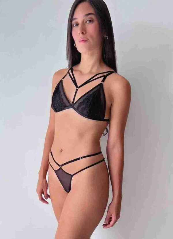 Conjunto elaborado con telas suaves, elásticas y frescas, con tiras ajustables en el panty y detalles que le dan un toque de elegancia y sensualidad al top.